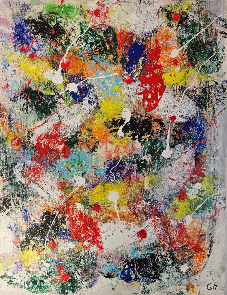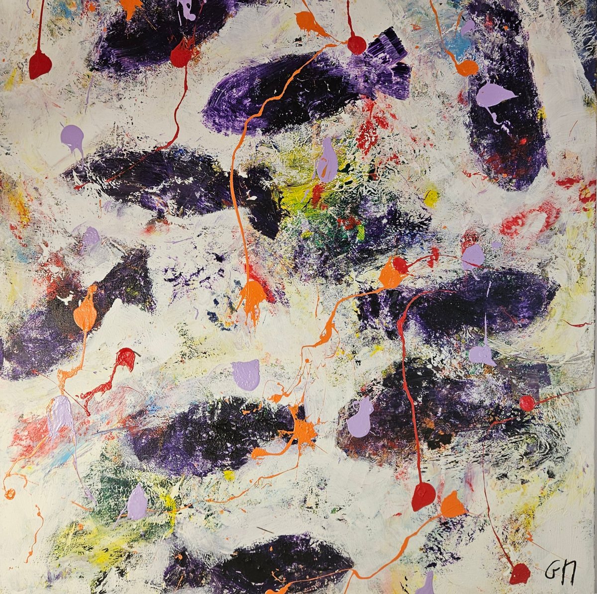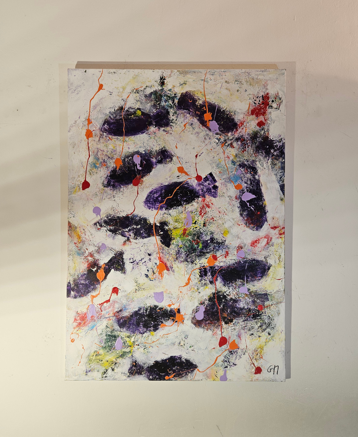 In this work, I wanted to capture the vibrant and mysterious energy of the ocean depths. Strokes of deep purple and splashes of orange and red evoke fish in motion, free and elusive. I used acrylic paint to bring this abstract dance to life, inviting you to feel the fluidity and power of nature in your space.