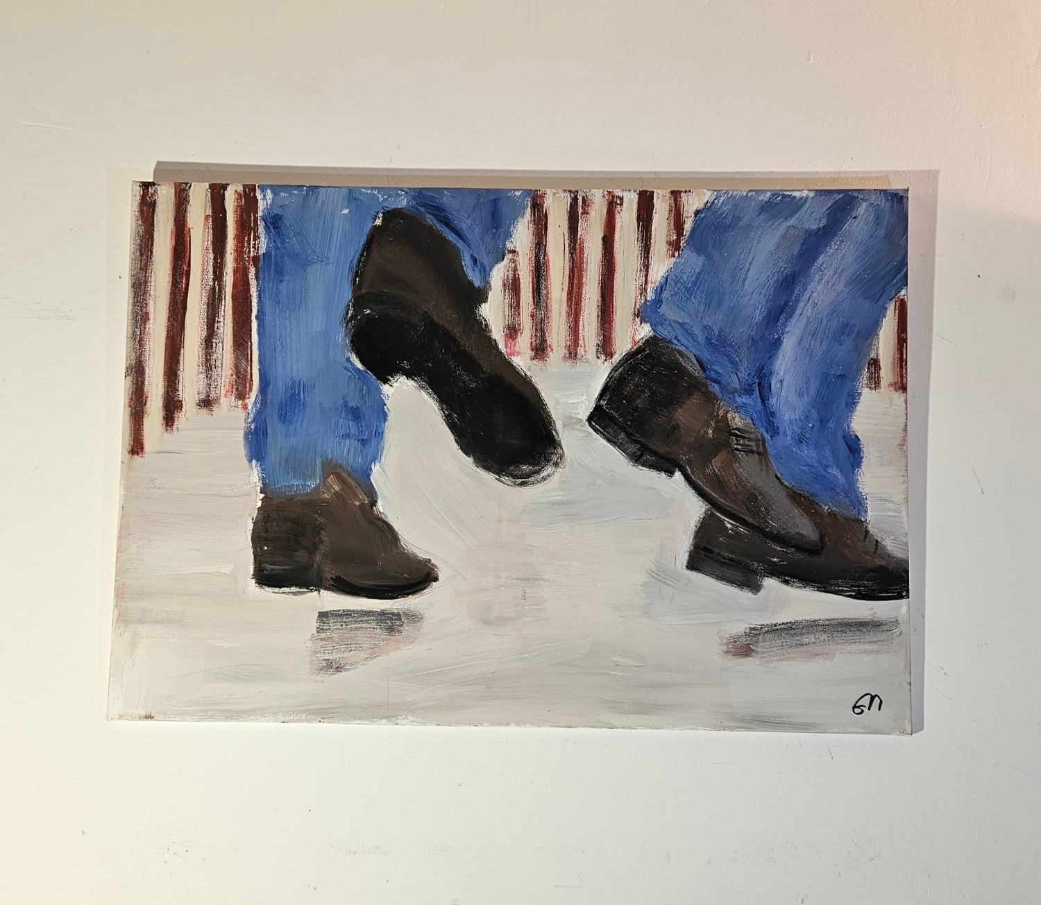 Here, I captured the vibrant energy of feet in motion, a symbol of rhythm and life. With acrylic, I wanted to convey the strength and precision of the movement, while maintaining a simple figurative touch so that everyone can feel the drive and passion behind each step. This work will bring a warm and vigorous dynamism to your interior.