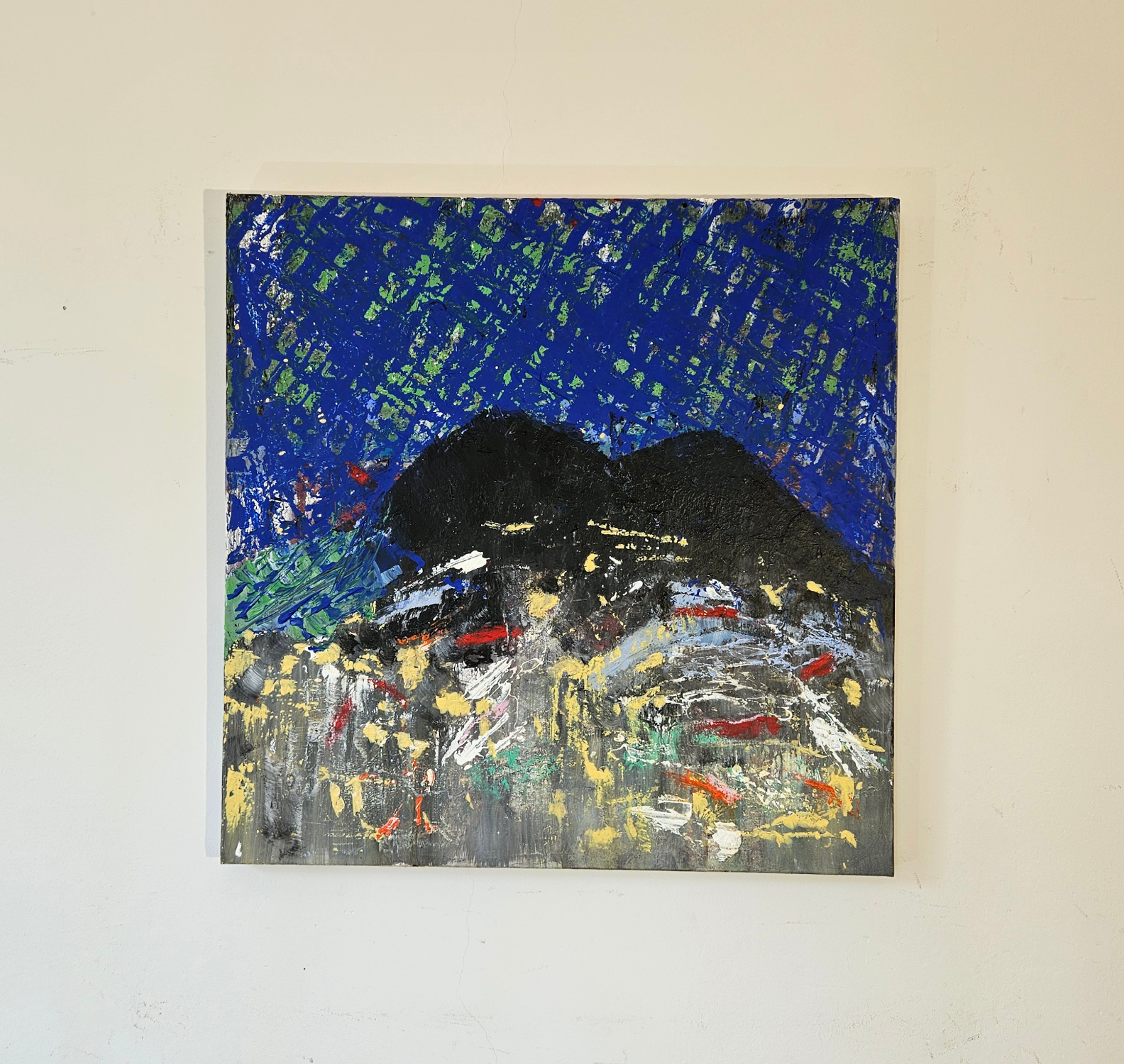Unique contemporary semi-figurative, semi-abstract painting by the French artist Guillaume Marchat, depicting the mountain at night