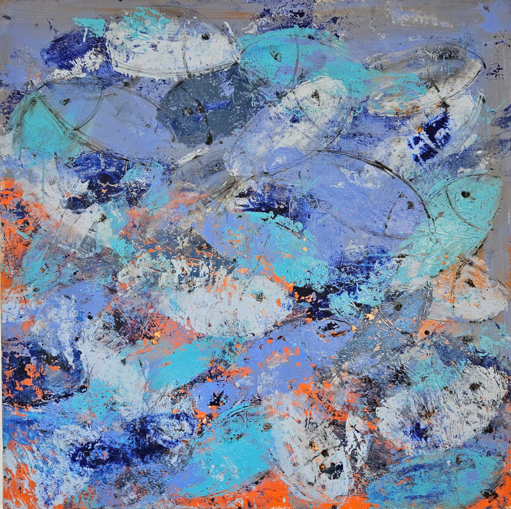 Contemporary figurative artwork, painting by the French artist Guillaume Marchat, depicting a homeless man sitting in the street. He is not painted because he is invisible to society, excluded from it, which gives the painting its strength and intensity.