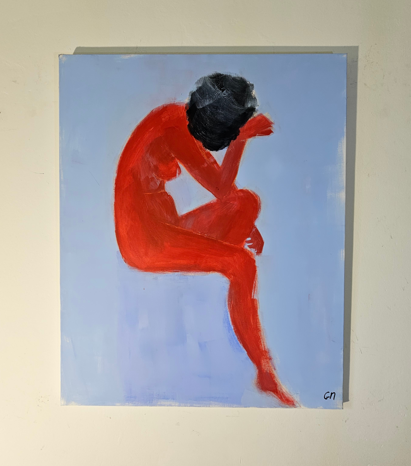 In this artwork, I sought to capture an intense, almost painful emotion through the vibrant red of the body contrasted with a soothing blue background. The choice of a semi-abstract style allows me to express the complexity of solitude and inner reflection, while infusing a passionate, raw energy that will energize the space in which it is displayed.