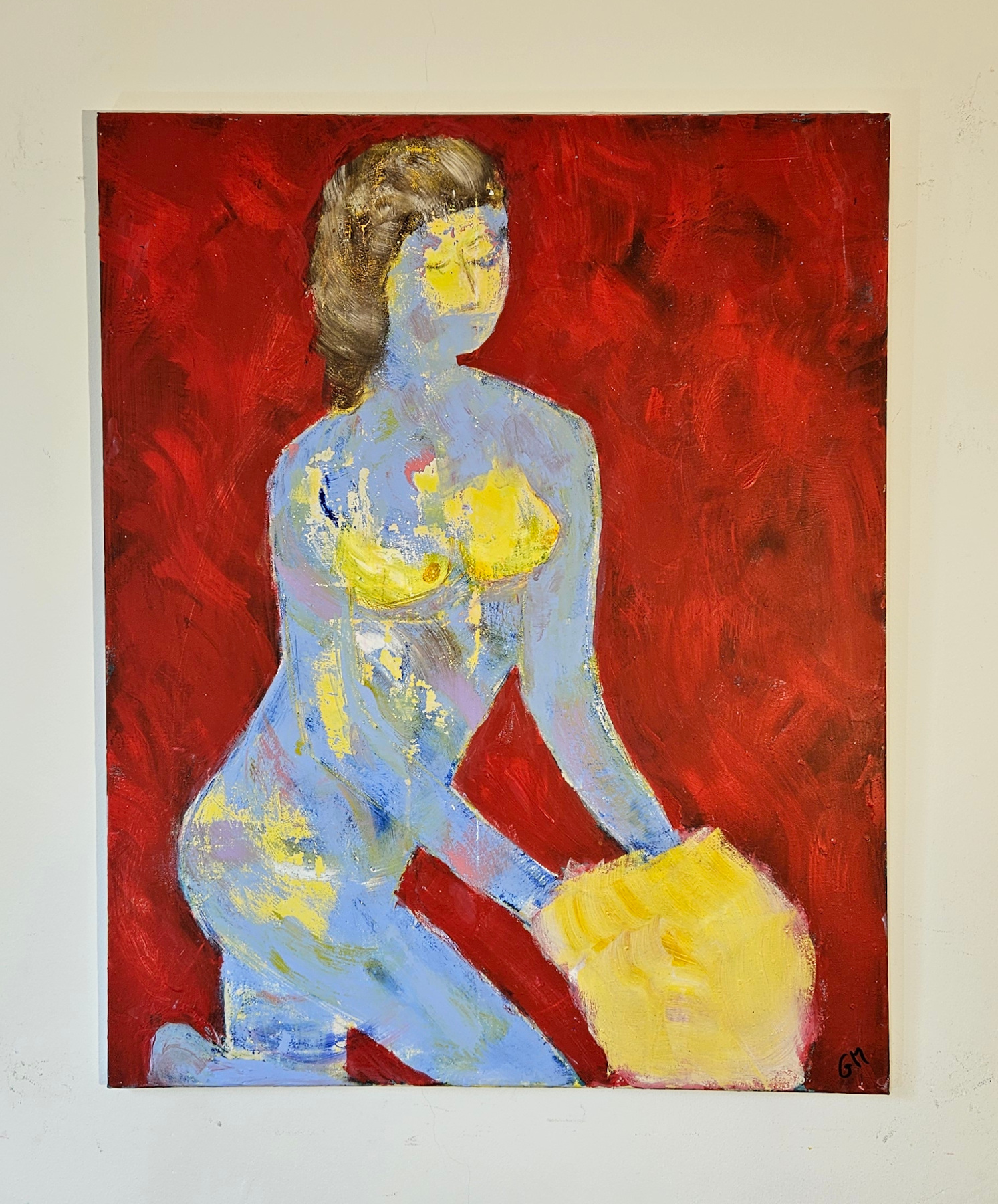 In this artwork, I sought to capture the combined strength and softness of a feminine silhouette in blue and yellow, set against an intense red background. Acrylic paint creates a vibrant texture that evokes raw emotion and a vital impulse. This creation will bring a passionate energy to your interior and an invitation to contemplate beauty in its simplicity.