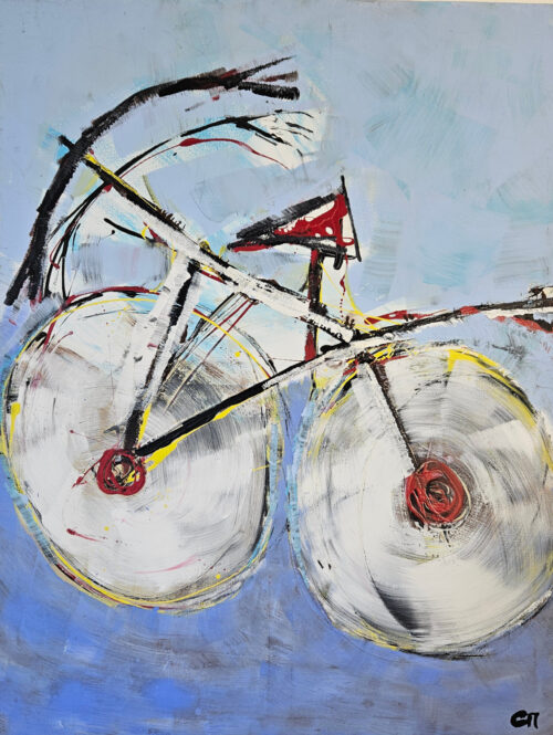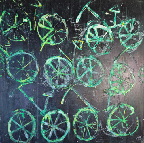 Bicycle, racing cyclists, acrylic painting on canvas, 100×100 cm