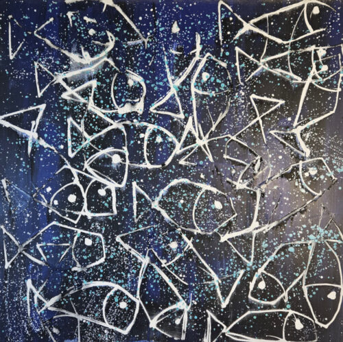 Abstract blue fish 2, acrylic painting on canvas, 80×80 cm.