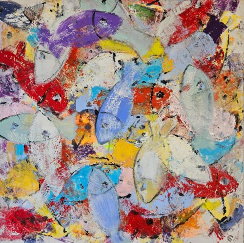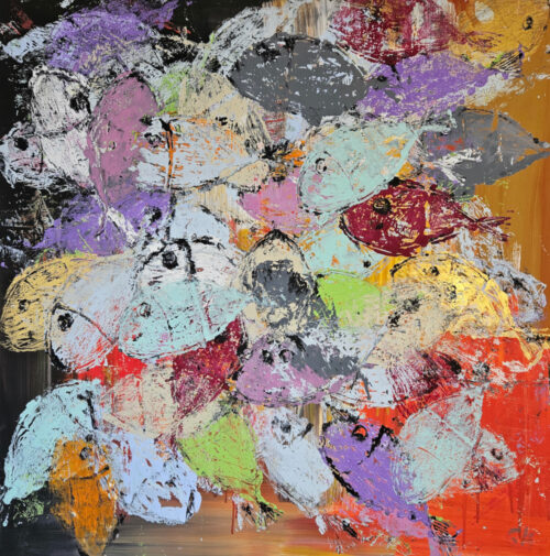 Multicolored Fish 2 – Acrylic painting on canvas 100×100 cm