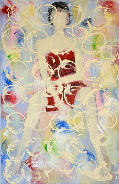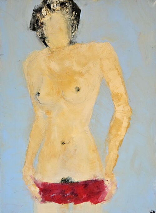 Woman undressing, acrylic painting on canvas, 100×73 cm.