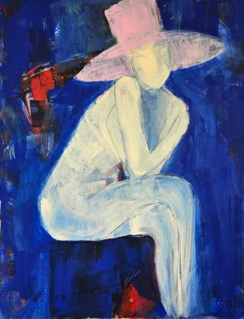 Woman with a pink hat, acrylic painting on canvas, 100x81cm.