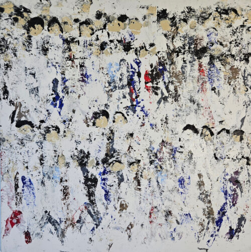 Abstract crowd, acrylic painting on a 100×100 cm canvas