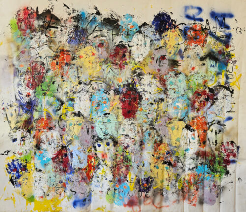 • Multicolored Heads, acrylic painting on large canvas, 198×167 cm