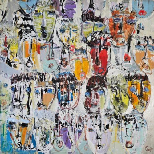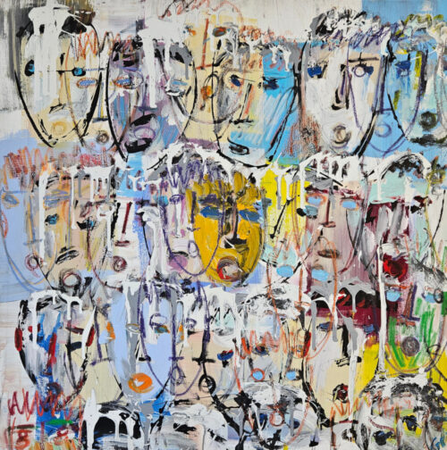 • Light-Colored Multicolored Heads, acrylic painting on canvas, 100×100 cm