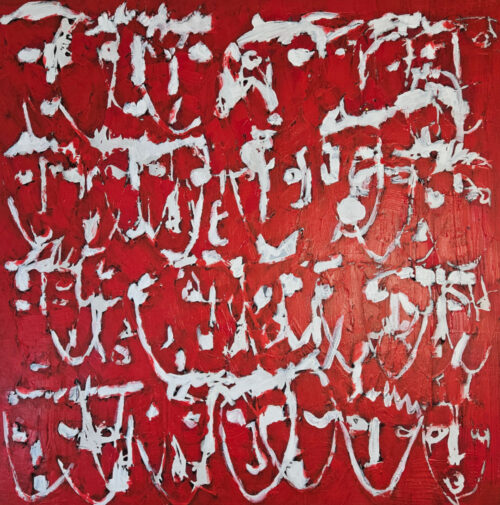 • Red Multicolored Heads, acrylic painting on canvas, 100×100 cm